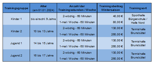 Trainingsbeiträge Kinder- und Jugendtraining im Winter (Stand: 2026)